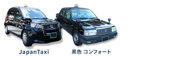 車両はJapanTaxi、黒色コンフォート、プリウスをご用意しております。